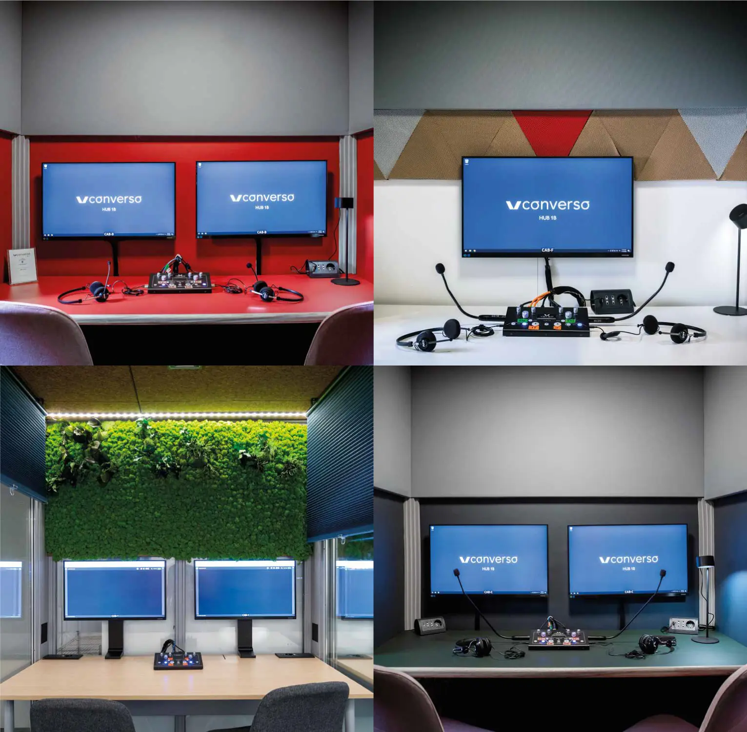 ISO-compliant, insonorizzate, ventilate con ricambio d'aria costante e postazioni ergonomiche.